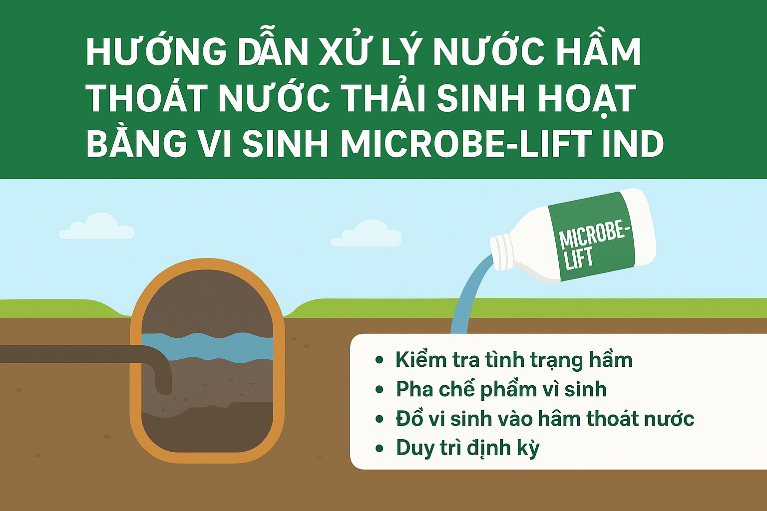 Sử dụng vi sinh Microbe-Lift IND để xử lý nước hầm thoát nước thải sinh hoạt khi hầm thấm chậm là một giải pháp hiệu quả, thân thiện môi trường và tiết kiệm chi phí. Việc duy trì định kỳ còn giúp hầm luôn thông thoáng, không mùi, hạn chế các sự cố tắc nghẽn và tràn ngược.